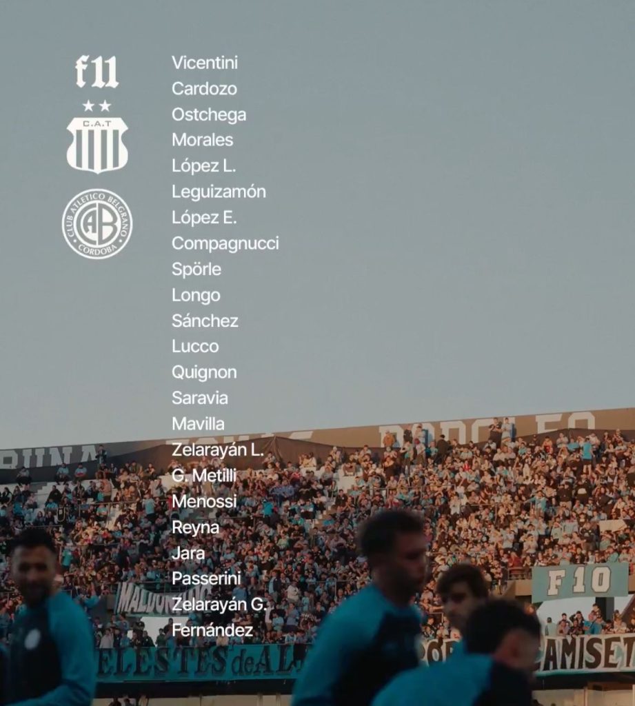 Belgrano: Thiago Cardozo; Elías López, Leonardo Morales, Lisandro López; Gabriel Compagnucci, Santiago Longo, Francisco González Metilli y Adrián Sporle; Lucas Zelarayán; Franco Jara y Nicolás “Uvita” Fernández.DT: Ricardo Zielinski.